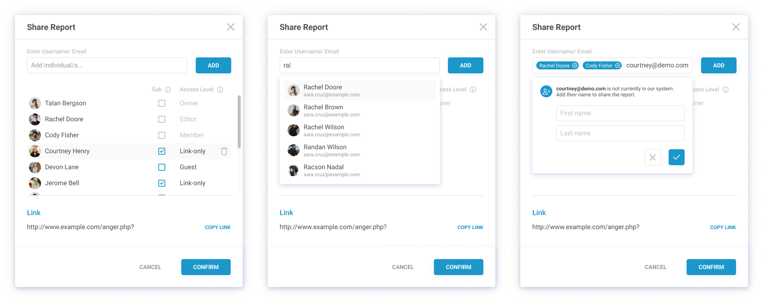 Recipient management for report sharing