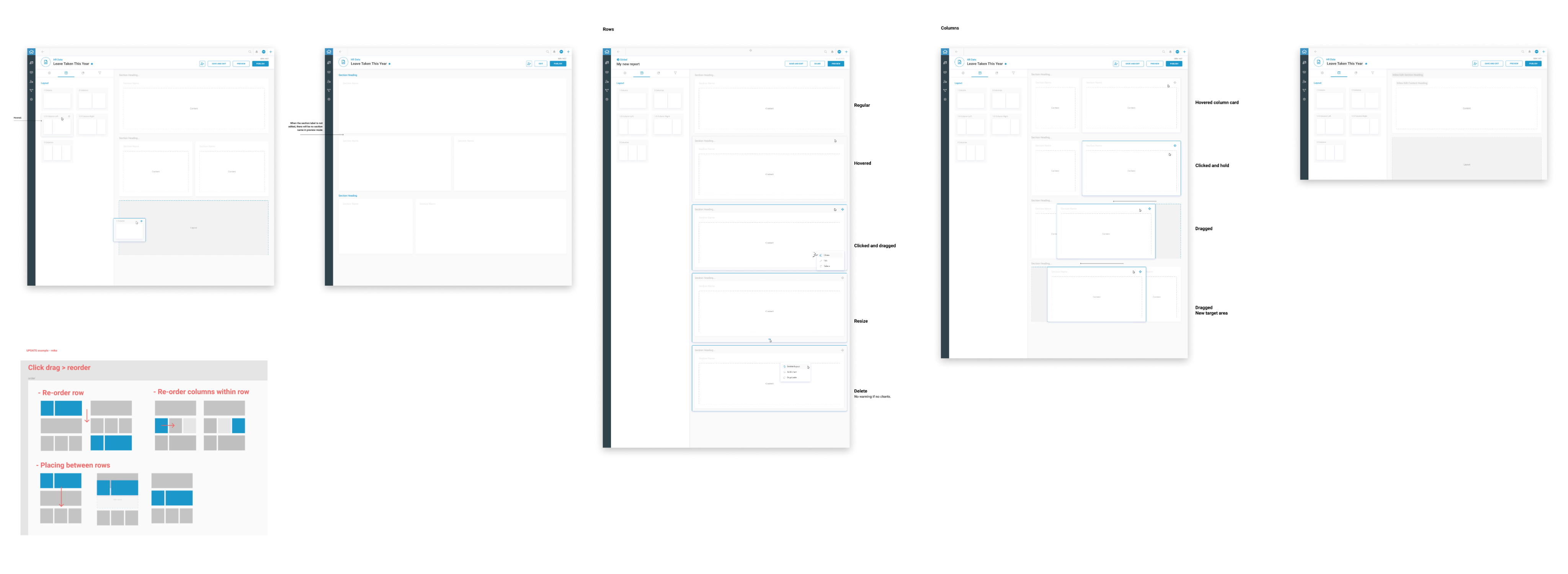 This approach ensures a clear, seamless, and intuitive experience for users as they navigate through report creation, customization, and management.