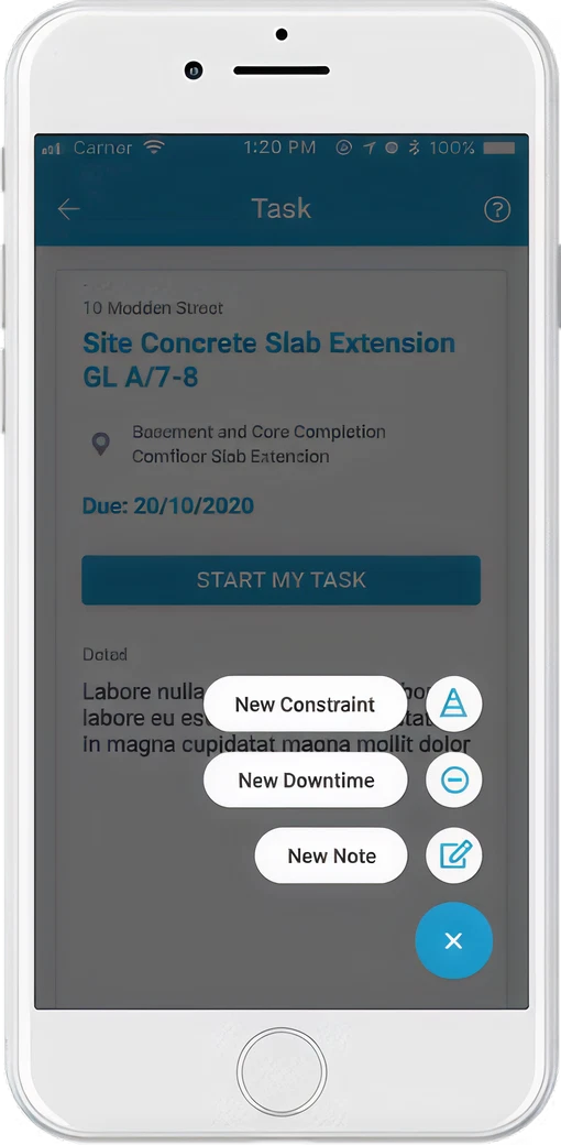 By surfacing the most important actions, such as logging constraints, updating task progress, and accessing key project info users could now complete daily reporting faster and with fewer errors.