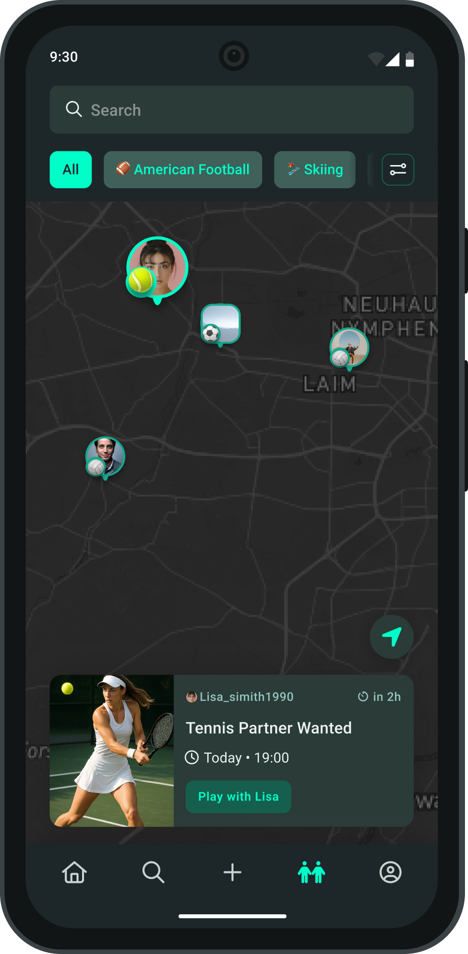 Discover people by sport and skill level